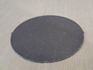 と言うのが、この社員はセンサー用の検出部品を、2mm厚のガラエポで作っていたのですが、センサーの光がガラエポを通過してしまい、遮光できない問題に直面していたからです。弊社のWAF材には色付けをしており、この時に剥がれた材料は、右写真の通りグレー色でした。